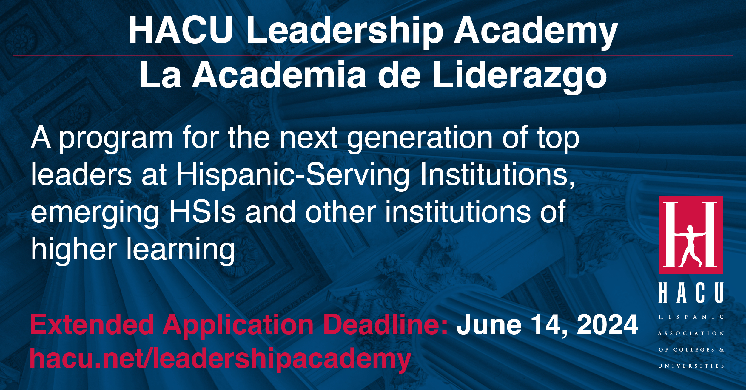 SAN ANTONIO – The Hispanic Association of Colleges and Universities is accepting applications for the sixth cohort of its Leadership Academy/La Academia de Liderazgo. The Leadership program prepares senior higher education administrators at colleges and universities nationwide for top leadership roles at Hispanic-Serving Institutions, emerging HSIs and other institutions of higher learning. The application deadline has been extended to June 14, 2024.