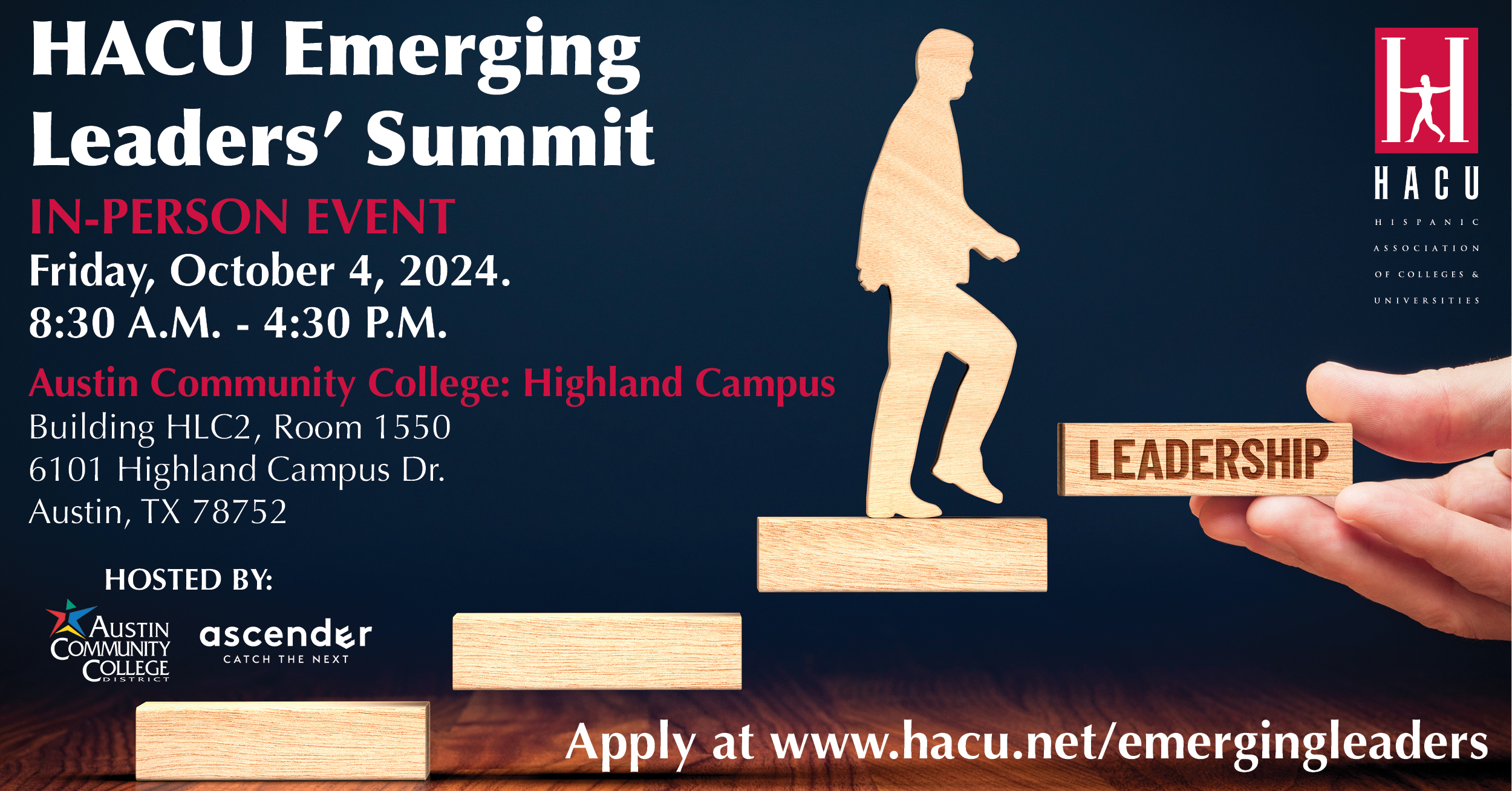 The Hispanic Association of Colleges and Universities is accepting applications from undergraduate and graduate students to participate in an in-person Emerging Leaders’ Summit on Oct. 4, 2024, from 8:30 a.m. – 4:30 p.m. at Austin Community College: Highland Campus.