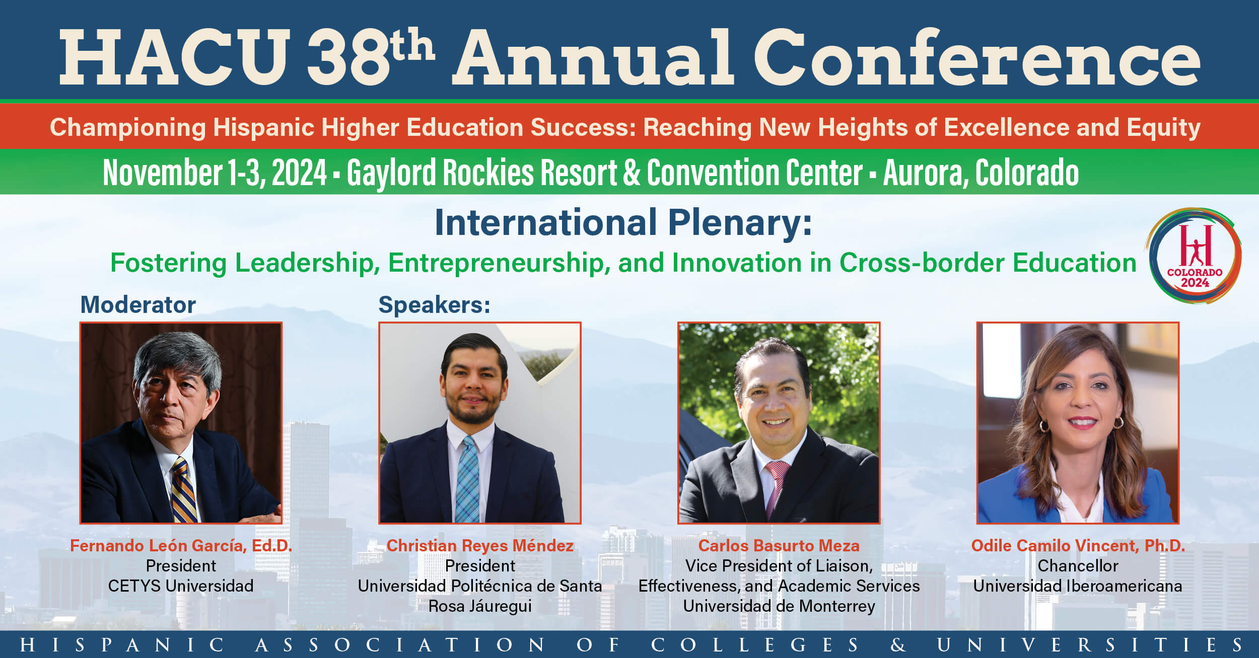 The Hispanic Association of Colleges and Universities has announced the speakers of the International Plenary of its 38th Annual Conference “Championing Hispanic Higher Education Success: Reaching New Heights of Excellence and Equity,” taking place on Nov. 3, 2024, at the Gaylord Rockies Resort and Convention Center in Aurora, Colorado.
