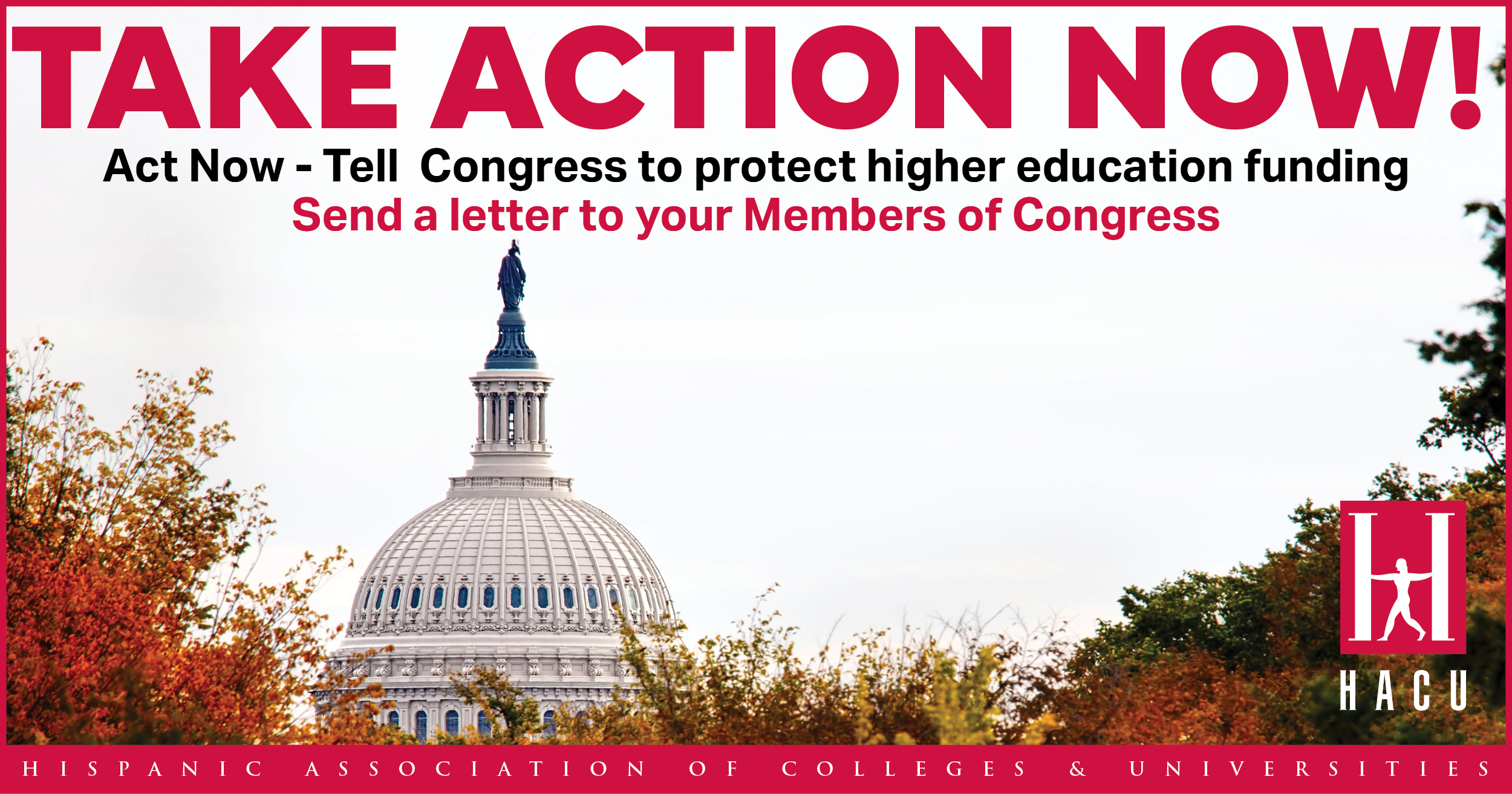 HACU has issued a Call to Action to its members and supporters to contact Members of Congress urging them to protect funding for Hispanic-Serving Institutions. Click here to send a letter to your Member of Congress.