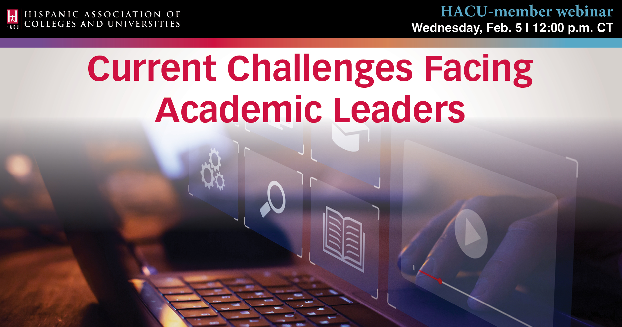 The Hispanic Association of Colleges and Universities is hosting a webinar titled, “Current Challenges Facing Academic Leaders,” for HACU-members, on Feb. 5, 2025, at 12:00 p.m. CT.