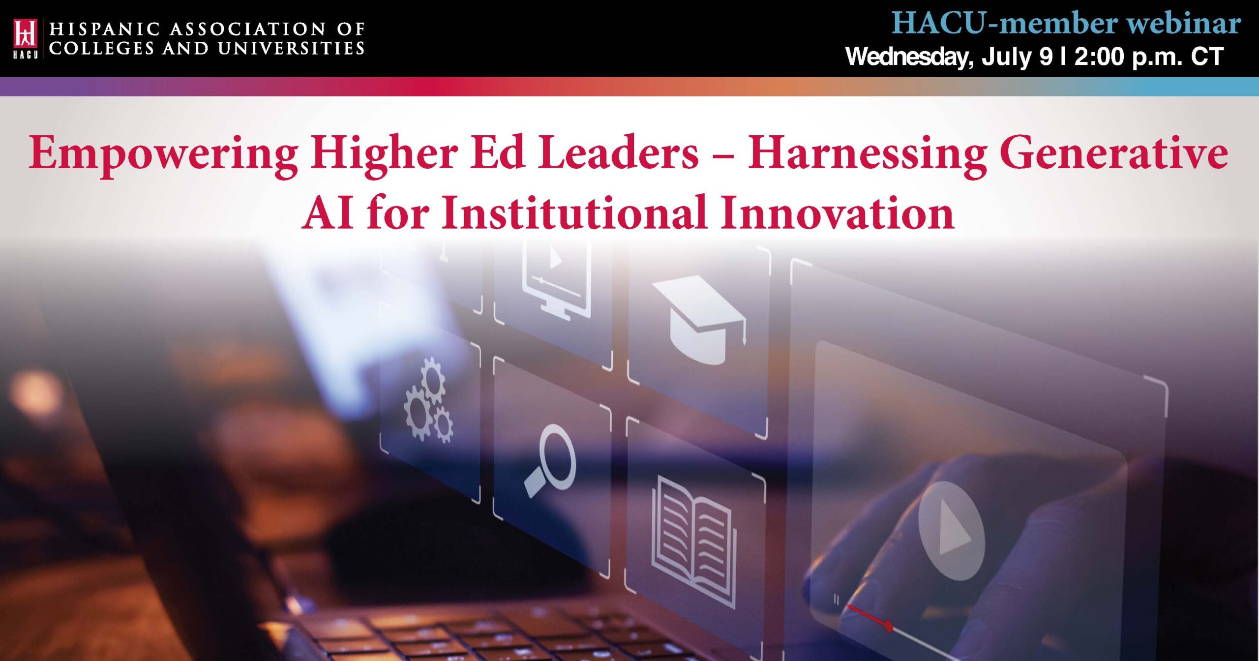 The Hispanic Association of Colleges and Universities will host a webinar titled, “Empowering Higher Ed Leaders – Harnessing Generative AI for Institutional Innovation,” for HACU-members, on July 9, 2025, at 2:00 p.m. CT. To register, click here.