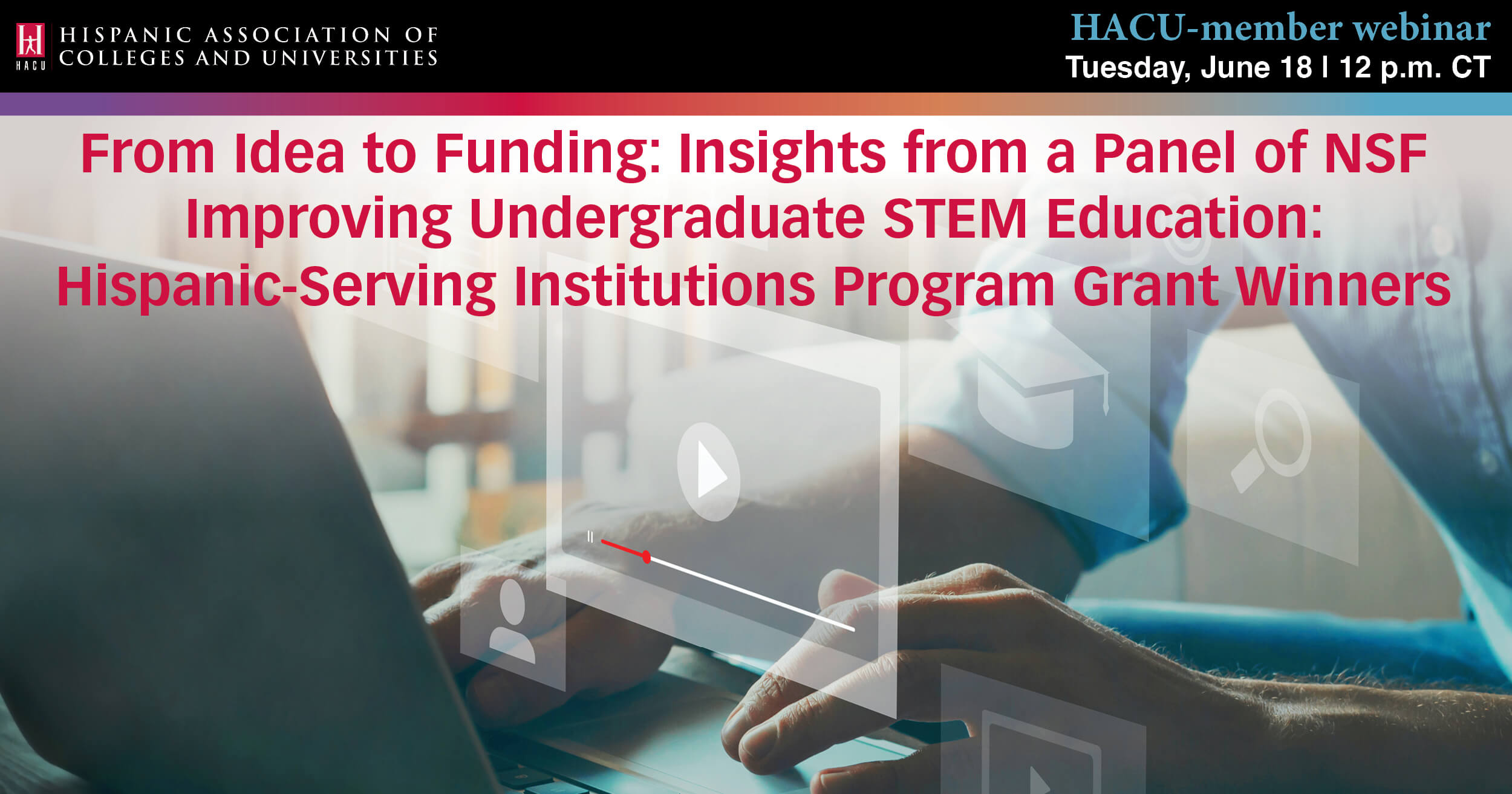 The Hispanic Association of Colleges and Universities is hosting a HACU-member webinar titled, “From Idea to Funding: Insights from a Panel of NSF Improving Undergraduate STEM Education: Hispanic-Serving Institutions Program Grant Winners,” on June 18, 2024, at 12:00 p.m. CT.