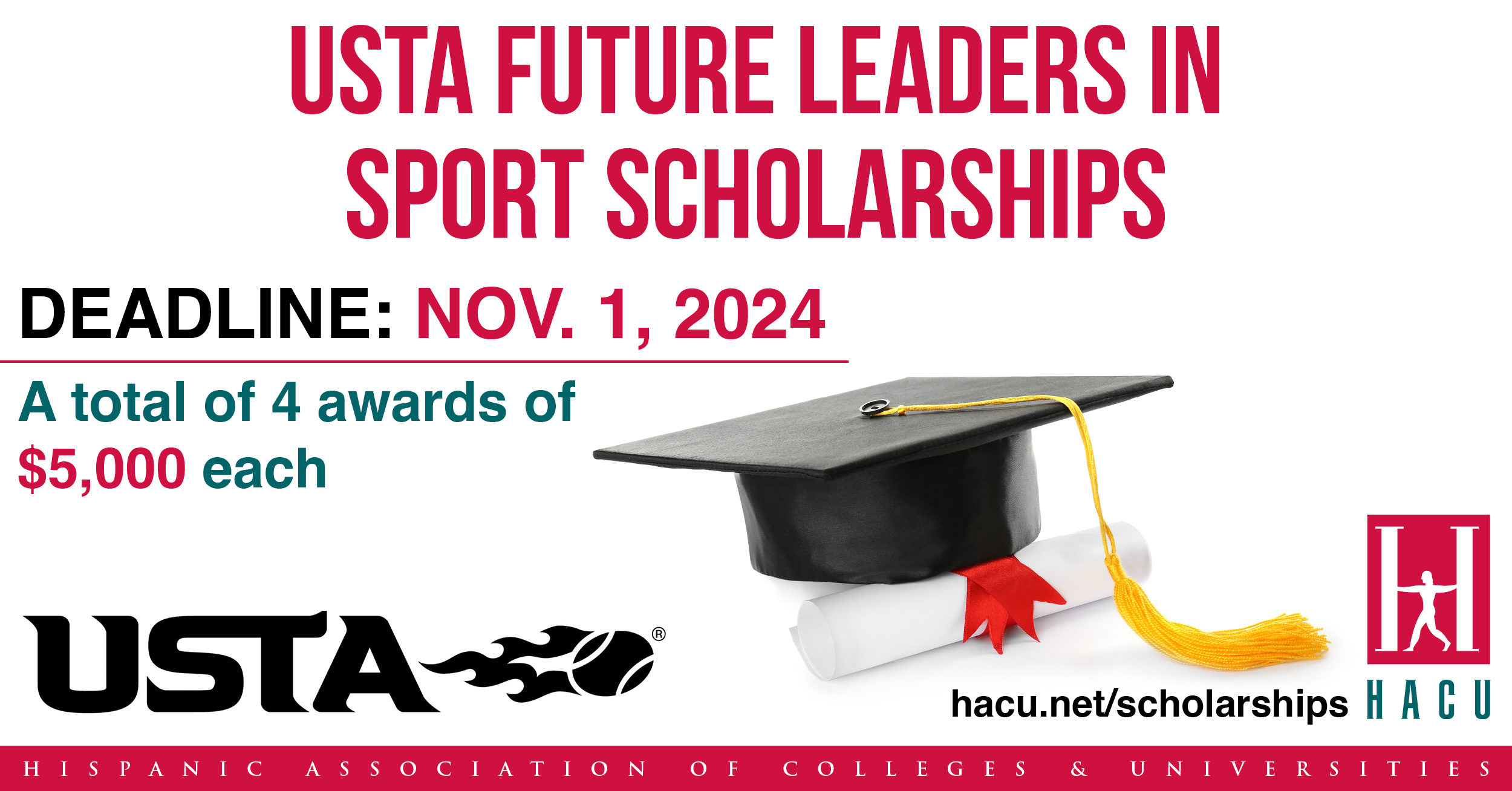 The Hispanic Association of Colleges and Universities has partnered with the United States Tennis Association Incorporated to offer four USTA Future Leaders in Sport Scholarships in the amount of $5,000.