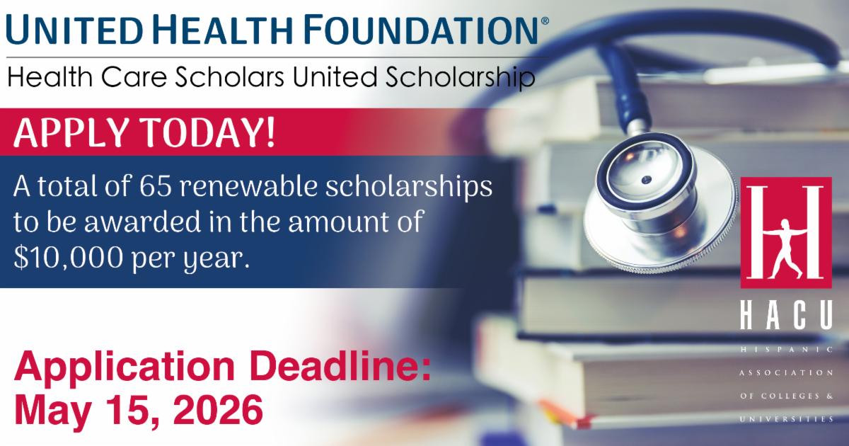 HACU has partnered with the United Health Foundation to offer 65 renewable scholarships in the amount of $10,000 per year. Deadline to apply is May 15, 2026. More>>