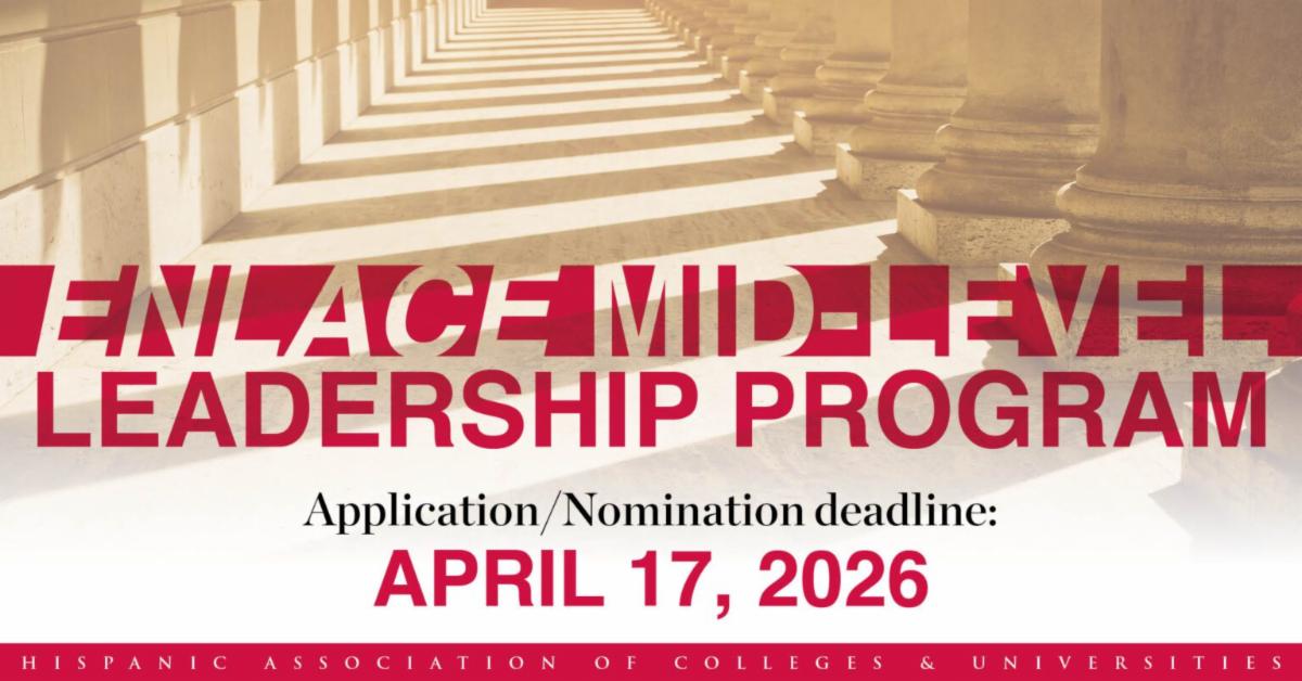 HACU is accepting applications for the Enlace Mid-Level Leadership Program. Academic leaders or non-academic support personnel serving in higher education institutions are encouraged to apply. Deadline for applications is April 17, 2026. More>>