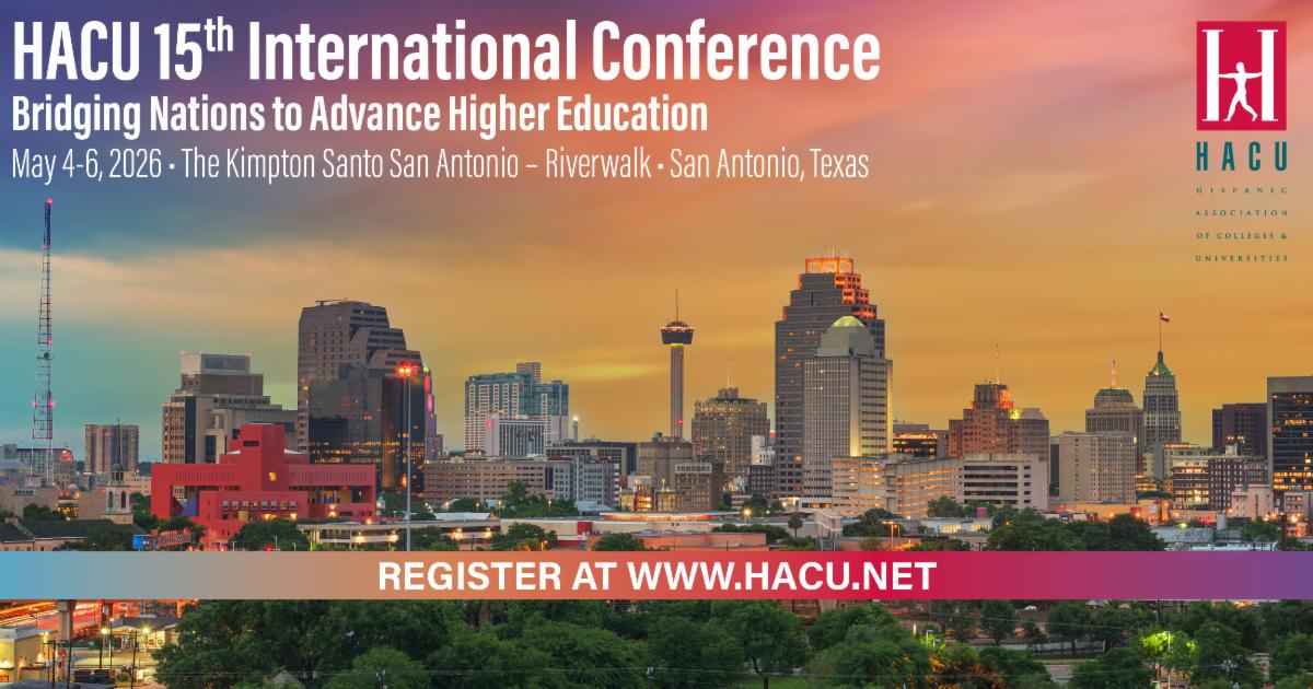 HACU's 40th Annual Conference “40 Years of Championing Higher Education Success: One Graduate at a Time,” will take place on Oct. 31- Nov. 2, 2026, at the Gaylord Pacific Resort & Convention Center in Chula Vista, California. Early Bird rates are available through May 31st. More>>
