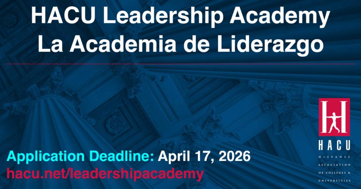 HACU is accepting applications for the eighth cohort of its Leadership Academy/La Academia de Liderazgo. The program prepares senior higher education administrators at colleges and universities nationwide for top leadership roles. Deadline for applications is April 17, 2026. More>>